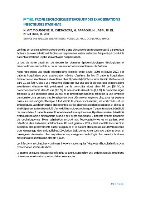 P72. PROFIL ETIOLOGIQUE ET EVOLUTIF DES EXACERBATIONS