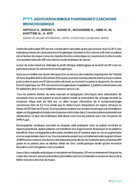 P77. ASSOCIATION EMBOLIE PULMONAIRE ET CARCINOME