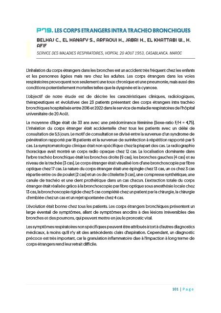 P79. LES CORPS ETRANGERS INTRA TRACHEO BRONCHIQUES