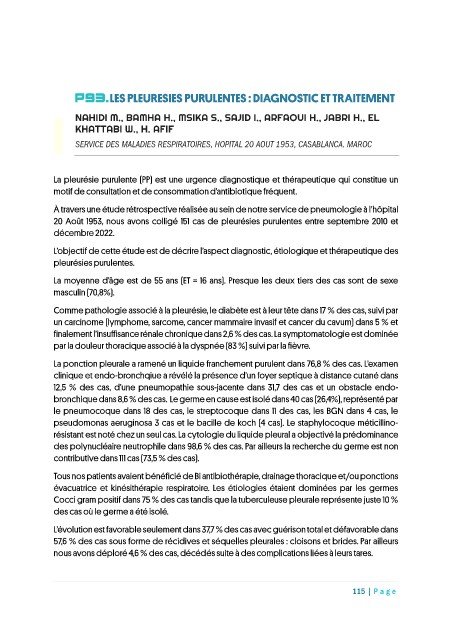 P93.LES PLEURESIES PURULENTES : DIAGNOSTIC ET TRAITEMENT