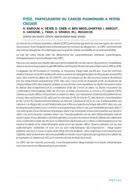 P52. PARTICULARITES DU CANCER PULMONAIRE A PETITES