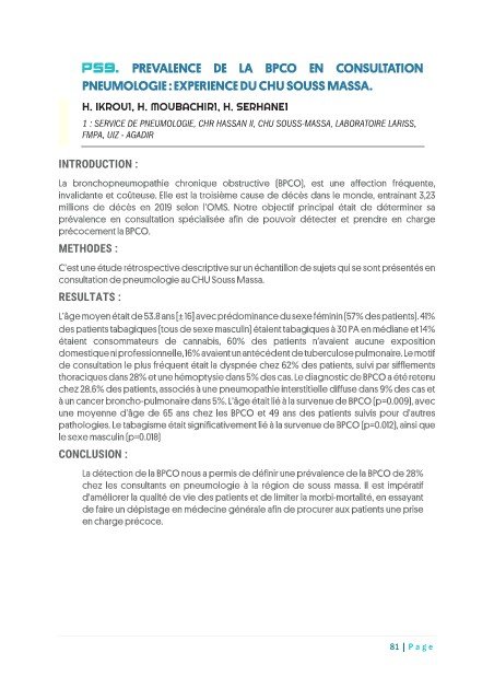 PNEUMOLOGIE : EXPERIENCE DU CHU SOUSS MASSA.