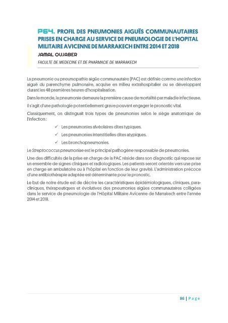dans le service de pneumologie de l’Hôpital Militaire Avicenne de Marrakech entre l’année